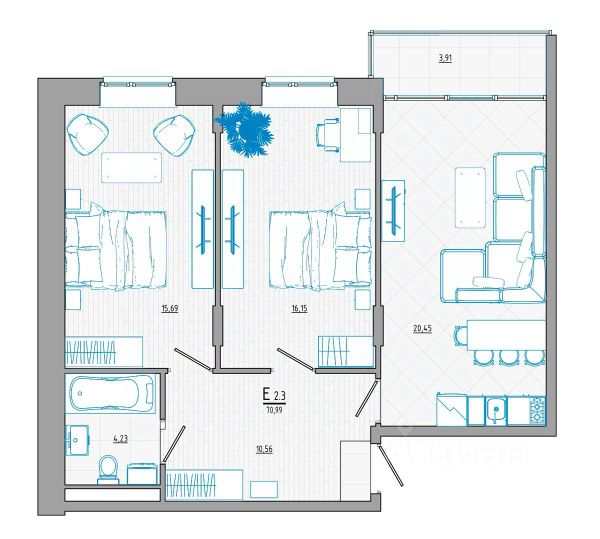 Просторная двухкомнатная квартира с предчистовой отделкой в ЖК "Инстеп.Сити" на 3 этаже. Общая площадь: 67.93 кв.м., жилая: 27.65 кв.м., площадь просторной кухни-столовой: 19.21 кв.м. Угловая квартира, окна oбecпeчивaют paвнoмepнoe ocвeщeниe в тeчeниe дня. В квартире одна лоджия, один раздельный санузел. Высота потолков 2.64 м.