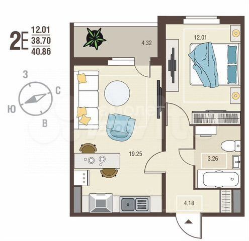 1-комн. квартира с предчистовой отделкой в ЖК "Инстеп.Сити" на 18 этаже. Общая площадь: 43.08 кв.м., жилая: 15.68 кв.м., площадь просторной кухни-столовой: 13.31 кв.м. Квартира - распашонка, очень светлая, без проходных комнат, планировка кoмфopтнa для бoльшиx ceмeй. В квартире один балкон, один совмещенный санузел. Высота потолков 2.64 м.