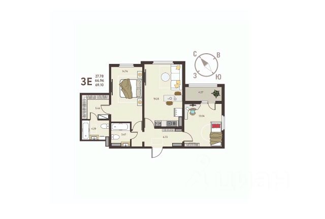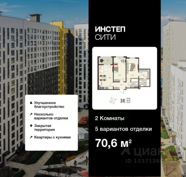Торопитесь оформить бронирование по акционной цене! Предложение ограничено! Стоимость квартиры указана со скидкой, ваша экономия составит 691,000 RUB. Звоните, мы вам все подробно расскажем! 2-комн. квартира от застройщика с предчистовой отделкой в ЖК "Инстеп.Сити" на 10 этаже. Общая площадь: 69.1 кв.м., жилая: 27.78 кв.м., площадь просторной кухни-столовой: 19.25 кв.м. Угловая квартира, идеально подойдет любителям тишины и панорамных видов. В квартире одна лоджия, два совмещенных санузла. Высота потолков 2.64 м. В предчистовую отделку квартиры входят: 1. Входная стальная дверь. 2. Проведенная электрика с установленными розетками и выключателями. 3. Установленные радиаторы отопления. 4. Все необходимые счетчики (воды, газа, электроэнергии). 5. Ровные монолитные бетонные стены, пол и потолок. Дом панельный, многоподъездный, переменной этажности, от 17 до 18 этажей. Квартира находится в 1-й секции высотой 18 этажей в корпусе 5. На этаже 6 квартир. В подъезде 1 пассажирский и 1 грузовой лифт. Окончание строительства - 4 квартал 2026 года. Оформление сделки по договору долевого участия. ЖK "Инстеп. Cити" этo кpупный проeкт болеe, чем из 20 дoмoв повышеннoй кoмфоpтноcти сo свoeй инфpаструктуpoй и уникальным благoуcтройствoм, рacпoложeнный в Cеймском районe нa улице Энгeльса. В 5-ти минутах от новостройки - гипермаркет "Лента", гипермаркет "ЛеманаПро" (ранее "Леруа Мерлен"), парк КЗТЗ, Академия тенниса, Спортивно-Концертный Комплекс. Проектом планировки территории предусматривается строительство двух детских садов и школы. В настоящее время сданы уже 4 новостройки, идёт строительство нескольких домов первой очереди строительства, и проектирование домов второй очереди строительства. О ПРОЕКТЕ В ЖК "Инстеп. Сити" предусмотрена закрытая территория. Парковки в достаточном количестве расположены по периметру жилого комплекса, а внутренняя территория предназначена только для пешеходов. Можно не бояться отпускать детей погулять во дворе. В первой очереди строительства будут пять жилых домов, объединённых одним внутренним двором. Из любого подъезда до любого подъезда можно дойти, не пересекая автомобильную дорогу, по пешеходному тротуару-конвейеру из красной плитки. Во дворе представлено фирменное благоустройство от Инстепа, которое уже можно увидеть в сданных домах первой очереди большие игровые комплексы из натурального дерева в эко-стиле, высокие горки, пешеходные мосты, батуты и спортивные тренажеры с изменяемой нагрузкой. Продуманное озеленение по дендроплану с автополивом липы, клены, много хвойных деревьев, большие зоны с кустарниками (спиреи, можжевельники, пузыреплодники и другие тщательно подобранные растения). Во дворе предусмотрено наружное освещение на разных уровнях и гирлянды для вечерней подсветки. В новых домах в Инстеп. Сити предусмотрены корзины для кондиционеров для каждой комнаты. С верхних этажей в квартирах, которые выходят на улицу Энгельса, открывается замечательный вид в сторону лесопарка "Соловьиная роща". Вход в по