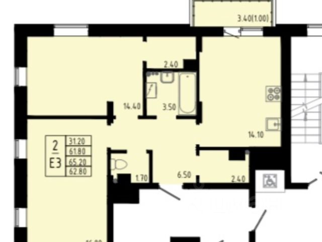 2комн квартира 66,7 м2 плюс подсобное помещение 5.57 м2 на этом же этаже.