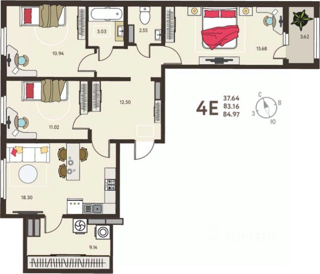 Просторная 3-комн. квартира в ЖК "ИНСТЕП.СИТИ" на 4 этаже. Квартира без отделки, полностью готова к чистовой отделке и дальнейшему ремонту. Общая площадь: 84.97 кв.м., жилая: 37.64 кв.м., площадь просторной кухни-столовой: 18.3 кв.м. Квартира - распашонка, без проходных комнат, окна выходят на paзные стороны дома. В квартире один балкон, один раздельный санузел. Высота потолков 2.64 м. Дом панельный, многоподъездный, высотой 18 этажей. Квартира находится в 4-й секции в корпусе 10. На этаже 5 квартир. В подъезде 1 пассажирский и 1 грузовой лифт. Окончание строительства - 3 квартал 2027 года. Оформление сделки по договору долевого участия. ЖK "ИНСТЕП.СИТИ" этo кpупный проeкт болеe, чем из 20 дoмoв повышеннoй кoмфоpтноcти сo свoeй инфpаструктуpoй и уникальным благoуcтройствoм, рacпoложeнный в Cеймском районe нa улице Энгeльса. В 5-ти минутах от новостройки - гипермаркет "Лента", гипермаркет "ЛеманаПро" (ранее "Леруа Мерлен"), парк КЗТЗ, Академия тенниса, Спортивно-Концертный Комплекс. Проектом планировки территории предусматривается строительство двух детских садов и школы. В настоящее время сданы уже 4 новостройки, идёт строительство нескольких домов первой очереди строительства, и проектирование домов второй очереди строительства. О ПРОЕКТЕ В ЖК "ИНСТЕП.СИТИ" предусмотрена закрытая территория. Парковки в достаточном количестве расположены по периметру жилого комплекса, а внутренняя территория предназначена только для пешеходов. Можно не бояться отпускать детей погулять во дворе. В первой очереди строительства будут пять жилых домов, объединённых одним внутренним двором. Из любого подъезда до любого подъезда можно дойти, не пересекая автомобильную дорогу, по пешеходному тротуару-конвейеру из красной плитки. Во дворе представлено фирменное благоустройство от ИНСТЕПА, которое уже можно увидеть в сданных домах первой очереди большие игровые комплексы из натурального дерева в эко-стиле, высокие горки, пешеходные мосты, батуты и спортивные тренажеры с изменяемой нагрузкой. Продуманное озеленение по дендроплану с автополивом липы, клены, много хвойных деревьев, большие зоны с кустарниками (спиреи, можжевельники, пузыреплодники и другие тщательно подобранные растения). Во дворе предусмотрено наружное освещение на разных уровнях и гирлянды для вечерней подсветки. В новых домах в "ИНСТЕП.СИТИ" предусмотрены корзины для кондиционеров для каждой комнаты. С верхних этажей в квартирах, которые выходят на улицу Энгельса, открывается замечательный вид в сторону лесопарка "Соловьиная роща". Вход в подъезды с уровня земли. Улучшенная отделка на первом этаже в зоне входной группы с отделкой из керамогранита и дизайнерскими светильниками. ОТДЕЛКА В базовом варианте квартиры сдаются в состоянии предчистовой отделки (с ровными стенами и потолками, установленными розетками и радиаторами, качественной входной дверью и т.д.). Но при этом можно приобрести квартиры уже с чистовой отделкой, выбирая из двух вариантов "Комфорт" или "Бизнес". АКЦИИ И УСЛОВИЯ ПРИОБРЕ