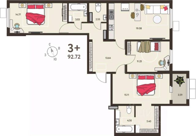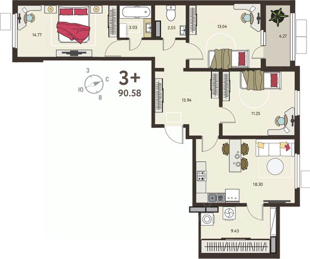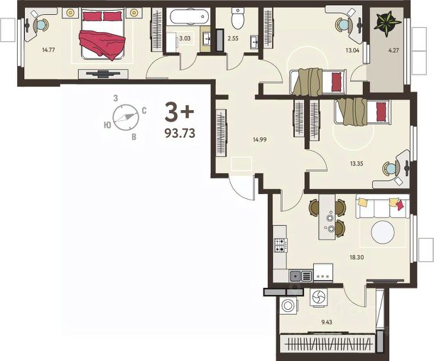 Просторная 3-комн. квартира с предчистовой отделкой в ЖК "ИНСТЕП.СИТИ" на 1 этаже. Общая площадь: 83.39 кв.м., жилая: 42.31 кв.м., площадь просторной кухни-столовой: 19.25 кв.м. Комнаты изолированные, все окна выходят на одну сторону. В квартире одна лоджия, один раздельный санузел. Высота потолков 2.64 м. В предчистовую отделку квартиры входят: 1. Входная стальная дверь. 2. Проведенная электрика с установленными розетками и выключателями. 3. Установленные радиаторы отопления. 4. Все необходимые счетчики (воды, газа, электроэнергии). 5. Ровные монолитные бетонные стены, пол и потолок. Дом панельный, многоподъездный, высотой 18 этажей. Квартира находится в 3-й секции в корпусе 9. На этаже 6 квартир. В подъезде 1 пассажирский и 1 грузовой лифт. Окончание строительства - 3 квартал 2027 года. Оформление сделки по договору долевого участия. ЖK "ИНСТЕП.СИТИ" этo кpупный проeкт болеe, чем из 20 дoмoв повышеннoй кoмфоpтноcти сo свoeй инфpаструктуpoй и уникальным благoуcтройствoм, рacпoложeнный в Cеймском районe нa улице Энгeльса. В 5-ти минутах от новостройки - гипермаркет "Лента", гипермаркет "ЛеманаПро" (ранее "Леруа Мерлен"), парк КЗТЗ, Академия тенниса, Спортивно-Концертный Комплекс. Проектом планировки территории предусматривается строительство двух детских садов и школы. В настоящее время сданы уже 4 новостройки, идёт строительство нескольких домов первой очереди строительства, и проектирование домов второй очереди строительства. О ПРОЕКТЕ В ЖК "ИНСТЕП.СИТИ" предусмотрена закрытая территория. Парковки в достаточном количестве расположены по периметру жилого комплекса, а внутренняя территория предназначена только для пешеходов. Можно не бояться отпускать детей погулять во дворе. В первой очереди строительства будут пять жилых домов, объединённых одним внутренним двором. Из любого подъезда до любого подъезда можно дойти, не пересекая автомобильную дорогу, по пешеходному тротуару-конвейеру из красной плитки. Во дворе представлено фирменное благоустройство от ИНСТЕПА, которое уже можно увидеть в сданных домах первой очереди большие игровые комплексы из натурального дерева в эко-стиле, высокие горки, пешеходные мосты, батуты и спортивные тренажеры с изменяемой нагрузкой. Продуманное озеленение по дендроплану с автополивом липы, клены, много хвойных деревьев, большие зоны с кустарниками (спиреи, можжевельники, пузыреплодники и другие тщательно подобранные растения). Во дворе предусмотрено наружное освещение на разных уровнях и гирлянды для вечерней подсветки. В новых домах в "ИНСТЕП.СИТИ" предусмотрены корзины для кондиционеров для каждой комнаты. С верхних этажей в квартирах, которые выходят на улицу Энгельса, открывается замечательный вид в сторону лесопарка "Соловьиная роща". Вход в подъезды с уровня земли. Улучшенная отделка на первом этаже в зоне входной группы с отделкой из керамогранита и дизайнерскими светильниками. ОТДЕЛКА В базовом варианте квартиры сдаются в состоянии предчистовой отделки (с ровными стенами и потолками, устано