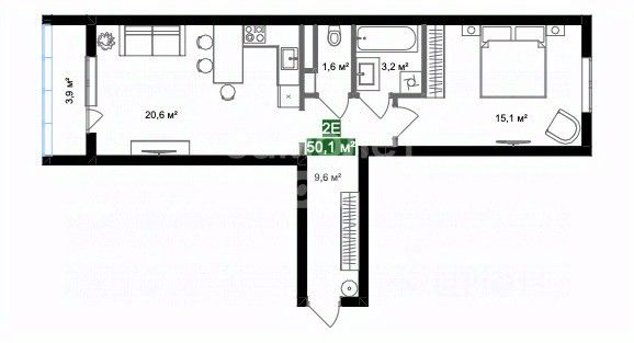 Двухкомнатная квартира с предчистовой отделкой в ЖК "ИНСТЕП.СИТИ" на 1 этаже. Общая площадь: 55.51 кв.м., жилая: 21.82 кв.м., площадь просторной кухни-столовой: 14.82 кв.м. Комнаты изолированные, все окна выходят на одну сторону. В квартире одна лоджия, один раздельный санузел. Высота потолков 2.64 м.