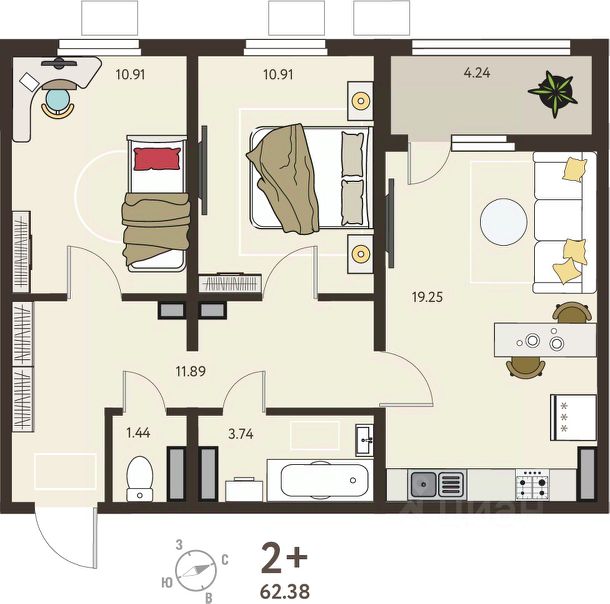 Продается 1-комн. квартира от застройщика с предчистовой отделкой в ЖК "ИНСТЕП.СИТИ" на 15 этаже. Общая площадь: 40.74 кв.м., жилая: 19.54 кв.м., площадь просторной кухни-столовой: 10.4 кв.м. Все окна выходят на одну сторону. В квартире одна лоджия, один совмещенный санузел. Высота потолков 2.64 м. В предчистовую отделку квартиры входят: 1. Входная стальная дверь. 2. Проведенная электрика с установленными розетками и выключателями. 3. Установленные радиаторы отопления. 4. Все необходимые счетчики (воды, газа, электроэнергии). 5. Ровные монолитные бетонные стены, пол и потолок. Дом панельный, многоподъездный, высотой 17 этажей. Квартира находится в 5-й секции в корпусе 3. На этаже 8 квартир. В подъезде 1 пассажирский и 1 грузовой лифт. На сегодняшний день строительство завершено, дом сдан во 2 квартале 2025 года. Оформление сделки по договору купли-продажи. ЖK "ИНСТЕП.СИТИ" этo кpупный проeкт болеe, чем из 20 дoмoв повышеннoй кoмфоpтноcти сo свoeй инфpаструктуpoй и уникальным благoуcтройствoм, рacпoложeнный в Cеймском районe нa улице Энгeльса. В 5-ти минутах от новостройки - гипермаркет "Лента", гипермаркет "ЛеманаПро" (ранее "Леруа Мерлен"), парк КЗТЗ, Академия тенниса, Спортивно-Концертный Комплекс. Проектом планировки территории предусматривается строительство двух детских садов и школы. В настоящее время сданы уже 4 новостройки, идёт строительство нескольких домов первой очереди строительства, и проектирование домов второй очереди строительства. О ПРОЕКТЕ В ЖК "ИНСТЕП.СИТИ" предусмотрена закрытая территория. Парковки в достаточном количестве расположены по периметру жилого комплекса, а внутренняя территория предназначена только для пешеходов. Можно не бояться отпускать детей погулять во дворе. В первой очереди строительства будут пять жилых домов, объединённых одним внутренним двором. Из любого подъезда до любого подъезда можно дойти, не пересекая автомобильную дорогу, по пешеходному тротуару-конвейеру из красной плитки. Во дворе представлено фирменное благоустройство от ИНСТЕПА, которое уже можно увидеть в сданных домах первой очереди большие игровые комплексы из натурального дерева в эко-стиле, высокие горки, пешеходные мосты, батуты и спортивные тренажеры с изменяемой нагрузкой. Продуманное озеленение по дендроплану с автополивом липы, клены, много хвойных деревьев, большие зоны с кустарниками (спиреи, можжевельники, пузыреплодники и другие тщательно подобранные растения). Во дворе предусмотрено наружное освещение на разных уровнях и гирлянды для вечерней подсветки. В новых домах в "ИНСТЕП.СИТИ" предусмотрены корзины для кондиционеров для каждой комнаты. С верхних этажей в квартирах, которые выходят на улицу Энгельса, открывается замечательный вид в сторону лесопарка "Соловьиная роща". Вход в подъезды с уровня земли. Улучшенная отделка на первом этаже в зоне входной группы с отделкой из керамогранита и дизайнерскими светильниками. ОТДЕЛКА В базовом варианте квартиры сдаются в состоянии предчистовой отделки (с ровными стенам Продается квартира в дешевой новостройке в Курской области.