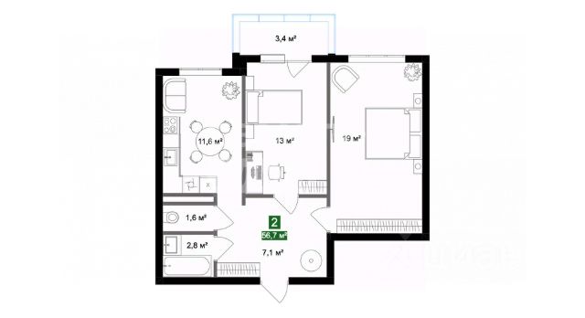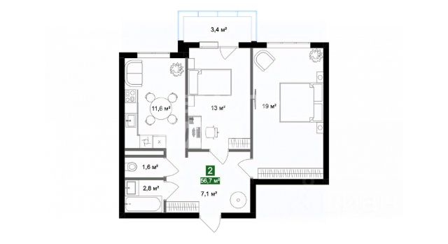 Просторная трехкомнатная квартира с предчистовой отделкой в ЖК "ИНСТЕП.СИТИ" на 1 этаже. Общая площадь: 86.63 кв.м., жилая: 38.21 кв.м., площадь просторной кухни-столовой: 19.25 кв.м. Комнаты изолированные, все окна выходят на одну сторону. В квартире одна лоджия, один раздельный санузел. Высота потолков 2.64 м.