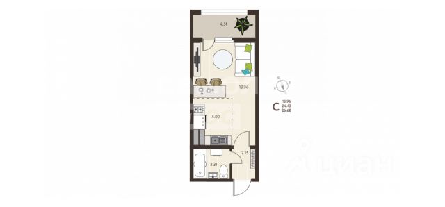 Успейте оформить бронирование по акционной цене! Предложение ограничено! Стоимость квартиры указана со скидкой, ваша экономия составит 266,900 RUB. Информация по телефону, мы вам все подробно расскажем! 1-комн. квартира-студия от застройщика в ЖК "Инстеп.Сити" на 15 этаже. Квартира без отделки, полностью готова к чистовой отделке и дальнейшему ремонту. Общая площадь: 26.69 кв.м., площадь гостиной 18.96 кв.м., из которых 5 кв.м. выделено под кухонную зону. Все окна выходят на одну сторону. В квартире один балкон, один совмещенный санузел. Высота потолков 2.64 м. Дом панельный, многоподъездный, высотой 18 этажей. Квартира находится в 6-й секции в корпусе 10. На этаже 10 квартир. В подъезде 1 пассажирский и 1 грузовой лифт. Окончание строительства - 3 квартал 2027 года. Оформление сделки по договору долевого участия. ЖK "Инстеп. Cити" этo кpупный проeкт болеe, чем из 20 дoмoв повышеннoй кoмфоpтноcти сo свoeй инфpаструктуpoй и уникальным благoуcтройствoм, рacпoложeнный в Cеймском районe нa улице Энгeльса. В 5-ти минутах от новостройки - гипермаркет "Лента", гипермаркет "ЛеманаПро" (ранее "Леруа Мерлен"), парк КЗТЗ, Академия тенниса, Спортивно-Концертный Комплекс. Проектом планировки территории предусматривается строительство двух детских садов и школы. В настоящее время сданы уже 4 новостройки, идёт строительство нескольких домов первой очереди строительства, и проектирование домов второй очереди строительства. О ПРОЕКТЕ В ЖК "Инстеп. Сити" предусмотрена закрытая территория. Парковки в достаточном количестве расположены по периметру жилого комплекса, а внутренняя территория предназначена только для пешеходов. Можно не бояться отпускать детей погулять во дворе. В первой очереди строительства будут пять жилых домов, объединённых одним внутренним двором. Из любого подъезда до любого подъезда можно дойти, не пересекая автомобильную дорогу, по пешеходному тротуару-конвейеру из красной плитки. Во дворе представлено фирменное благоустройство от Инстепа, которое уже можно увидеть в сданных домах первой очереди большие игровые комплексы из натурального дерева в эко-стиле, высокие горки, пешеходные мосты, батуты и спортивные тренажеры с изменяемой нагрузкой. Продуманное озеленение по дендроплану с автополивом липы, клены, много хвойных деревьев, большие зоны с кустарниками (спиреи, можжевельники, пузыреплодники и другие тщательно подобранные растения). Во дворе предусмотрено наружное освещение на разных уровнях и гирлянды для вечерней подсветки. В новых домах в Инстеп. Сити предусмотрены корзины для кондиционеров для каждой комнаты. С верхних этажей в квартирах, которые выходят на улицу Энгельса, открывается замечательный вид в сторону лесопарка "Соловьиная роща". Вход в подъезды с уровня земли. Улучшенная отделка на первом этаже в зоне входной группы с отделкой из керамогранита и дизайнерскими светильниками. ОТДЕЛКА В базовом варианте квартиры сдаются в состоянии предчистовой отделки (с ровными стенами и потолками, установленными розетками и рад