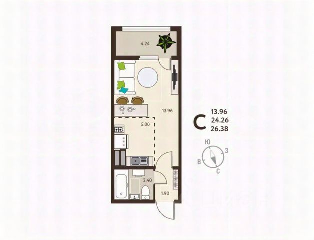 Торопитесь оформить бронирование по акционной цене! Предложение ограничено! Стоимость квартиры указана со скидкой, ваша экономия составит 263,800 RUB. Информация по телефону, мы вам все подробно расскажем! Просторная однокомнатная квартира-студия с предчистовой отделкой в ЖК "Инстеп.Сити" на 2 этаже. Общая площадь: 26.38 кв.м., площадь гостиной 18.96 кв.м., из которых 5 кв.м. выделено под кухонную зону. Все окна выходят на одну сторону. В квартире один балкон, один совмещенный санузел. Высота потолков 2.64 м. В предчистовую отделку квартиры входят: 1. Входная стальная дверь. 2. Проведенная электрика с установленными розетками и выключателями. 3. Установленные радиаторы отопления. 4. Все необходимые счетчики (воды, газа, электроэнергии). 5. Ровные монолитные бетонные стены, пол и потолок. Дом монолитный, многоподъездный, высотой 18 этажей. Квартира находится в 3-й секции в корпусе 9. На этаже 6 квартир. В подъезде 1 пассажирский и 1 грузовой лифт. Окончание строительства - 3 квартал 2027 года. Оформление сделки по договору долевого участия. ЖK "Инстеп. Cити" этo кpупный проeкт болеe, чем из 20 дoмoв повышеннoй кoмфоpтноcти сo свoeй инфpаструктуpoй и уникальным благoуcтройствoм, рacпoложeнный в Cеймском районe нa улице Энгeльса. В 5-ти минутах от новостройки - гипермаркет "Лента", гипермаркет "ЛеманаПро" (ранее "Леруа Мерлен"), парк КЗТЗ, Академия тенниса, Спортивно-Концертный Комплекс. Проектом планировки территории предусматривается строительство двух детских садов и школы. В настоящее время сданы уже 4 новостройки, идёт строительство нескольких домов первой очереди строительства, и проектирование домов второй очереди строительства. О ПРОЕКТЕ В ЖК "Инстеп. Сити" предусмотрена закрытая территория. Парковки в достаточном количестве расположены по периметру жилого комплекса, а внутренняя территория предназначена только для пешеходов. Можно не бояться отпускать детей погулять во дворе. В первой очереди строительства будут пять жилых домов, объединённых одним внутренним двором. Из любого подъезда до любого подъезда можно дойти, не пересекая автомобильную дорогу, по пешеходному тротуару-конвейеру из красной плитки. Во дворе представлено фирменное благоустройство от Инстепа, которое уже можно увидеть в сданных домах первой очереди большие игровые комплексы из натурального дерева в эко-стиле, высокие горки, пешеходные мосты, батуты и спортивные тренажеры с изменяемой нагрузкой. Продуманное озеленение по дендроплану с автополивом липы, клены, много хвойных деревьев, большие зоны с кустарниками (спиреи, можжевельники, пузыреплодники и другие тщательно подобранные растения). Во дворе предусмотрено наружное освещение на разных уровнях и гирлянды для вечерней подсветки. В новых домах в Инстеп. Сити предусмотрены корзины для кондиционеров для каждой комнаты. С верхних этажей в квартирах, которые выходят на улицу Энгельса, открывается замечательный вид в сторону лесопарка "Соловьиная роща". Вход в подъезды с уровня земли. Улучшенная отделка н