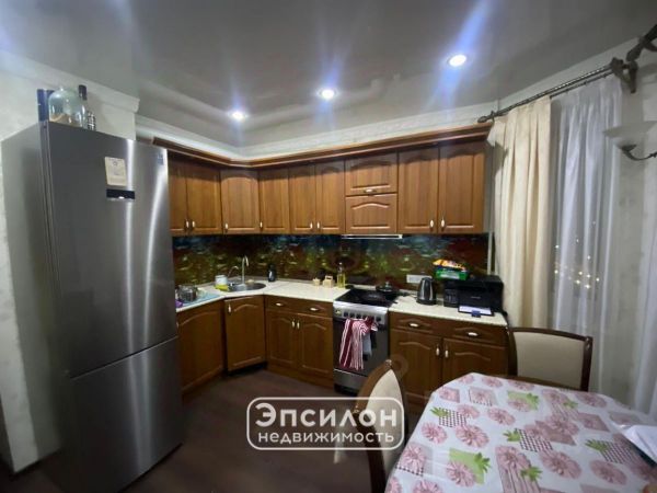 КУХНЯ: 9,0 м2, встроенная угловая кухня TORCHETTI (Италия, дерево-бук) со встроенной двухкамерной мойкой, большой обеденный стол и бытовой техникой ARISТON: холодильник, морозильная камера, варочная электропанель (4-х конфорочная), духовка, вытяжка. Стиральная машина Индезит (Россия). Металлические жалюзи на окне.