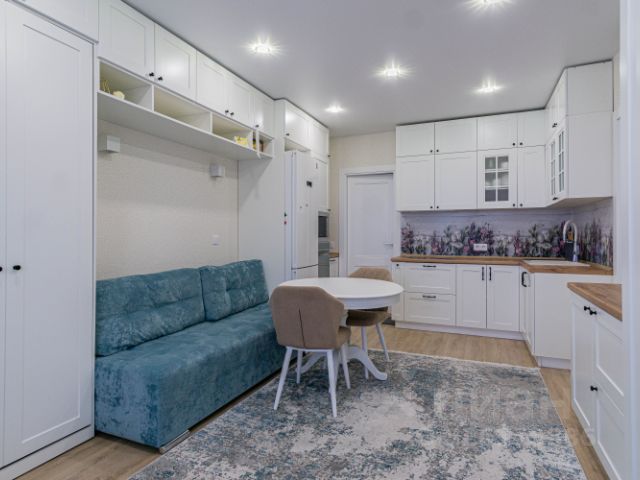 КОМНАТА: большая, светлая, разделена стекляной панорамной раздвижной перегородкой, что функционально и очень удобно для выделения детской зоны, спального места или приватного места пожилому человеку и т.д.), при необходимости легко демонтируется.