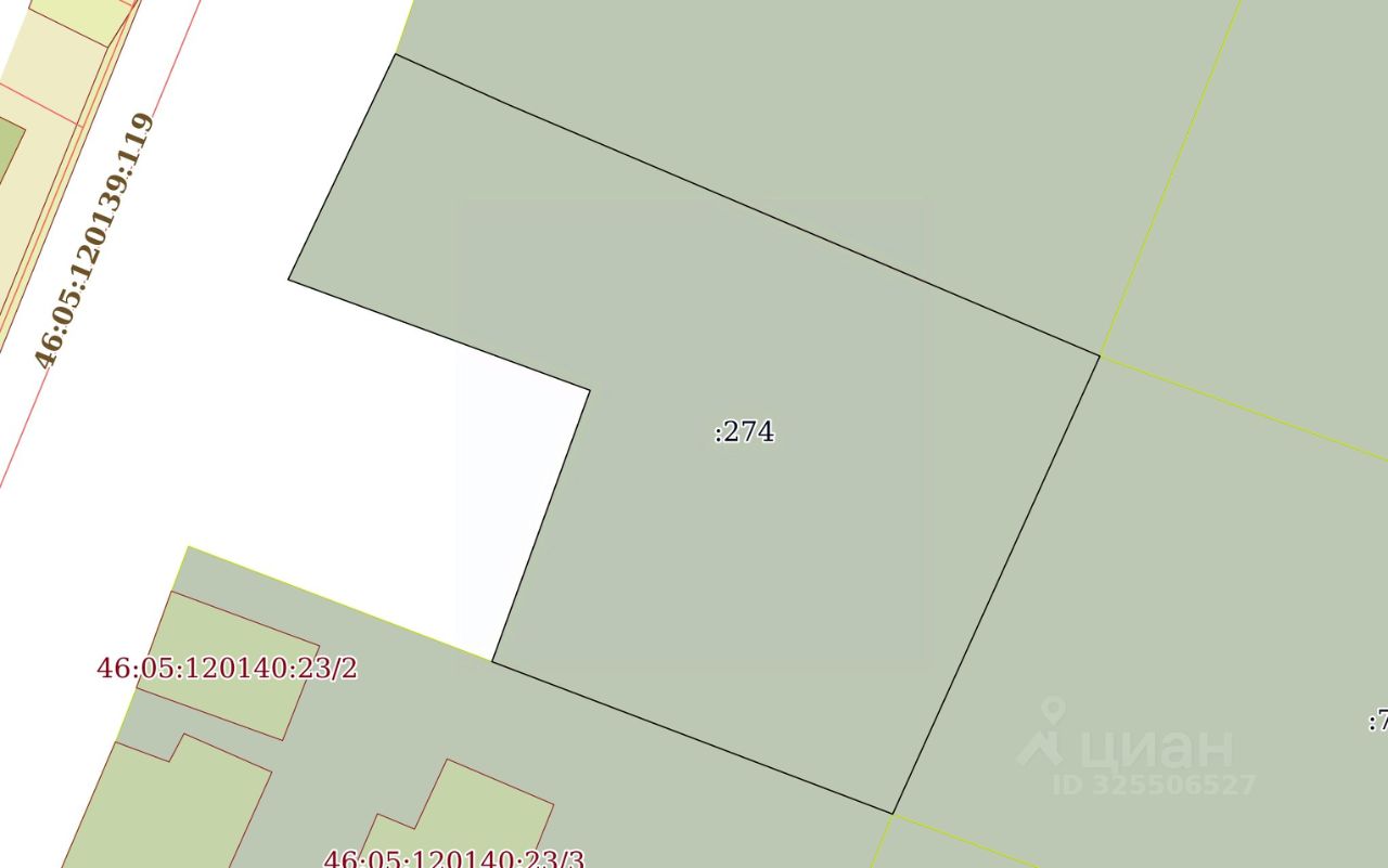 Земельный участок из категории: земли населенных пунктов, вид разрешённого использования: для индивидуального жилищного строительства, площадью 472 кв.м., кадастровый номер: 46:05:120140:274, местоположение: Российская Федерация, Курская область, муниципальный район Дмитриевский, городское поселение город Дмитриев, город Дмитриев, улица Мира, обременений не зарегистрировано