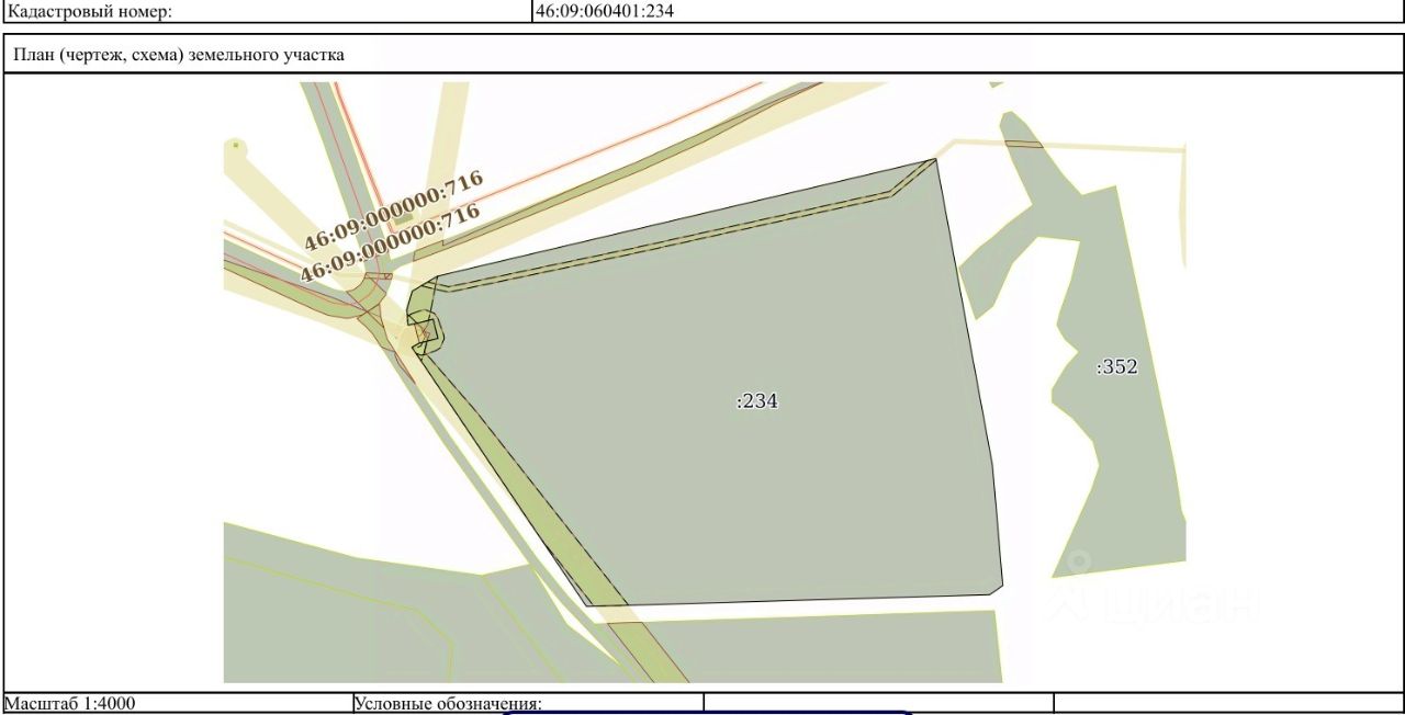 емельный участок, государственная собственность на который не разграничена, расположенный на территории муниципального образования "Конышевский муниципальный район" Курской области, из категории земель населённых пунктов, разрешенное использование скотоводство, площадью 111767 кв.м., кадастровый номер 46:09:060401:234, местоположение: Курская область, Конышевский район, Захарковский сельсовет, с. Захарково, особые отметки: согласно выписке из ЕГРН