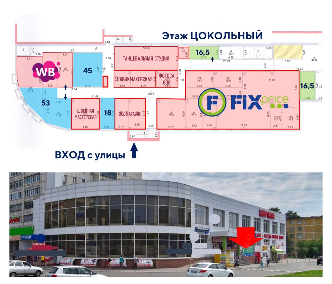 Цокольный этаж: торговые павильоны, бытовые услуги, FixPrice, пвз WB