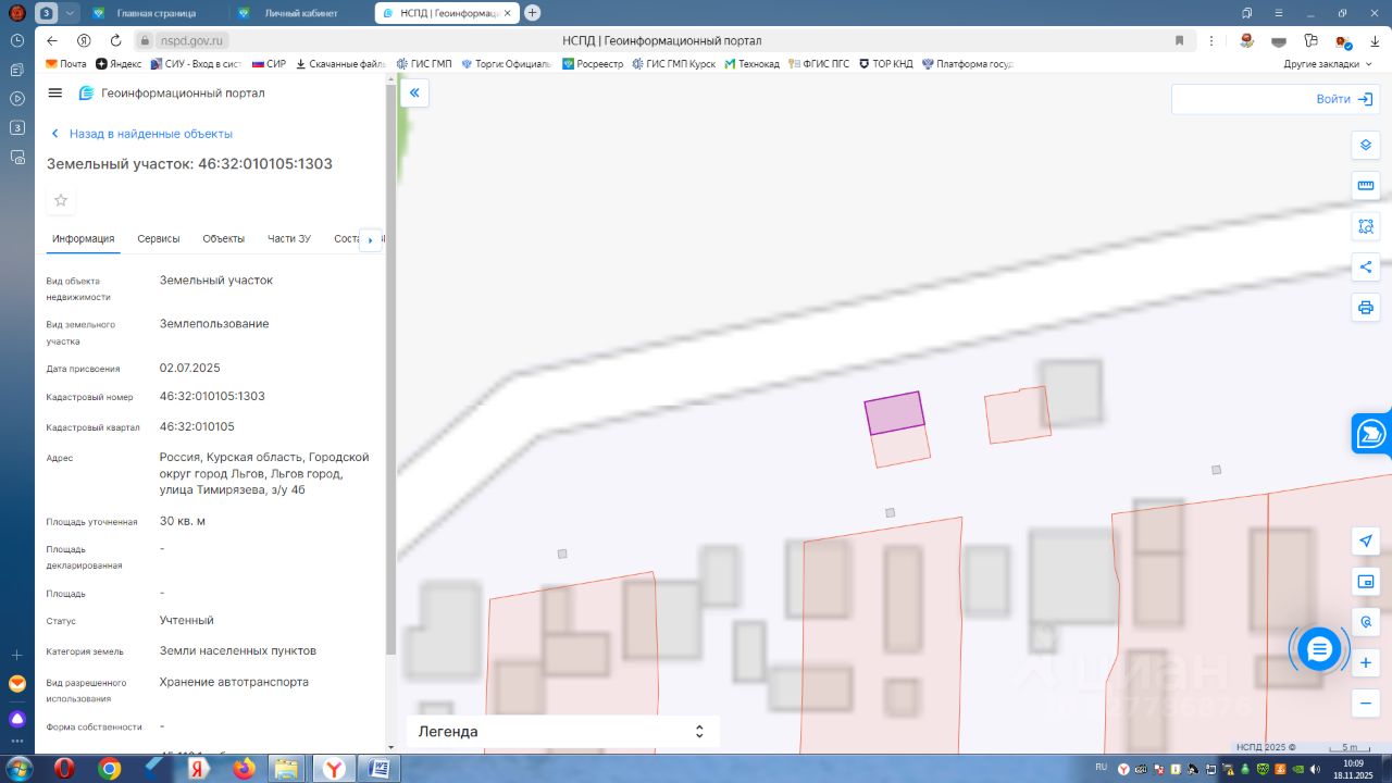 Адрес (описание местоположения): Курская область, г.Льгов, ул. Тимирязева, з/у 4а Кадастровый номер: 46:32:010105:1304 Кадастровая стоимость: 45118 руб. 10 коп. Общая площадь: 30 кв.м. Категория земель: земли населенных пунктов. Разрешенное использование: Хранение автотранспорта.