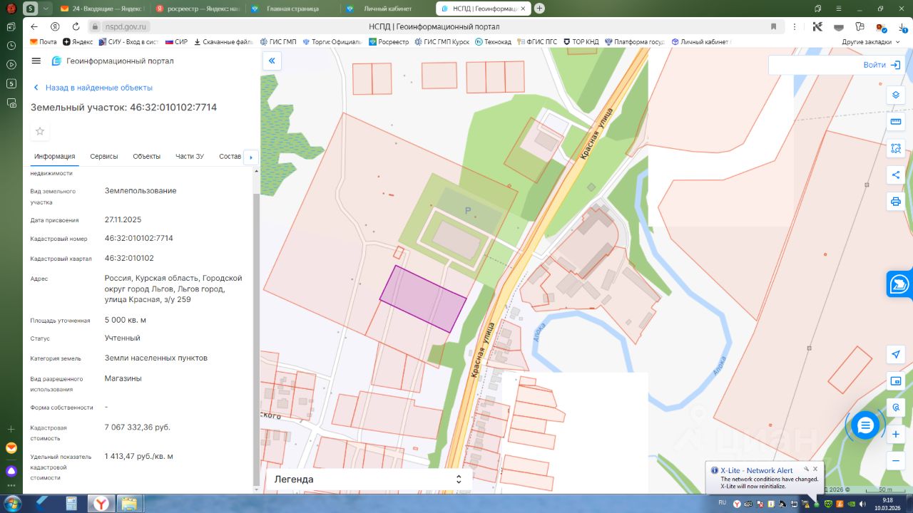 Адрес (описание местоположения): Курская область, г.Льгов, ул. Красная, з/у 259 Кадастровый номер: 46:32:010102:7714 Кадастровая стоимость: 7067332 руб. 36 коп. Общая площадь: 5000 кв.м. Категория земель: земли населенных пунктов. Разрешенное использование: Магазины.