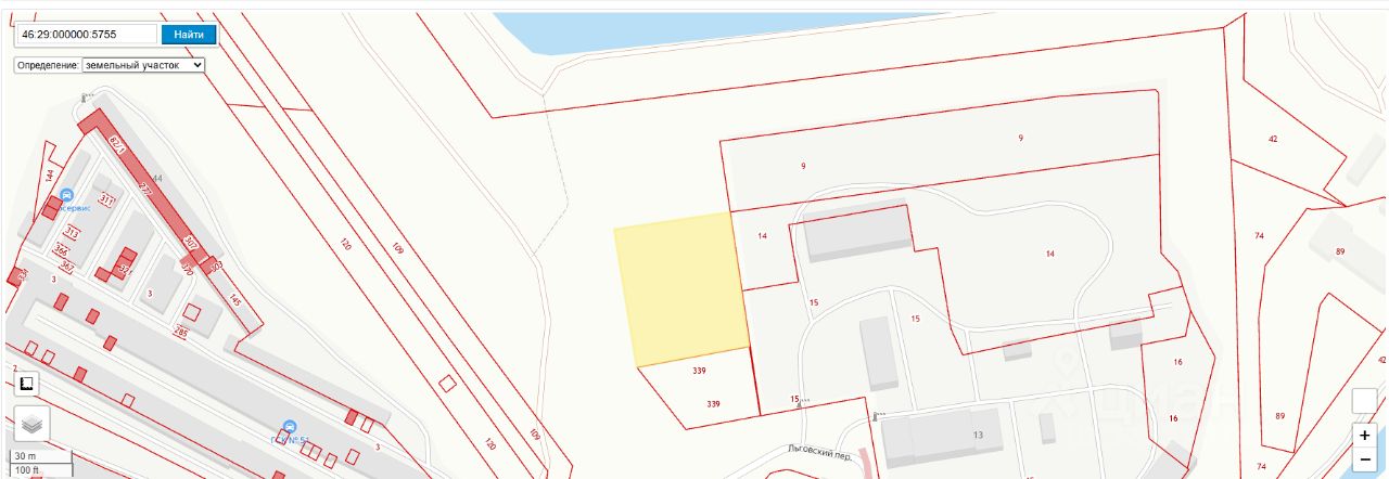 Земельный участок с кадастровым номером 46:29:000000:5755, площадью 3600 кв.м., расположенный по адресу: г. Курск, переулок Льговский, для целей, связанных со строительством, с видом разрешенного использования "хранение автотранспорта; склады"