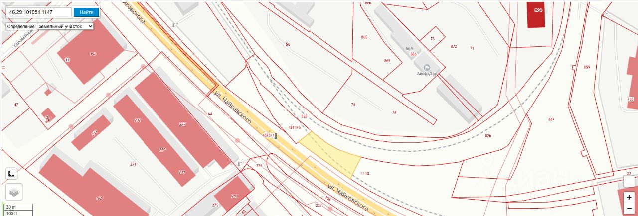 Земельный участок с кадастровым номером 46:29:101054:1147, площадью 1129 кв.., расположенный по адресу: г. Курск, ул. Чайковского, для целей, связанных со строительством, с видом разрешенного использования "производственная деятельность"