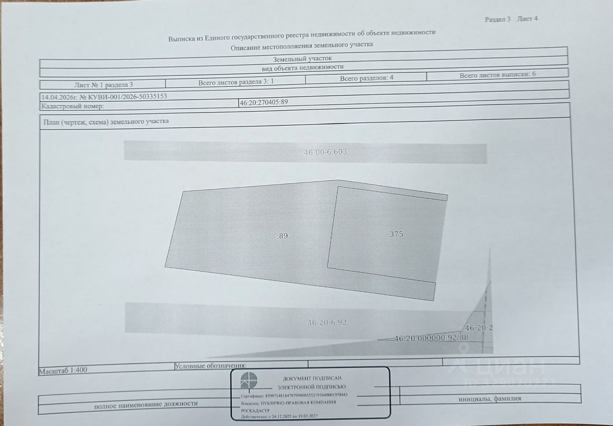 Земельный участок из земель населенных пунктов площадью 692 кв. м., с кадастровым номером 46:20:270405:89, расположенный по адресу: Российская Федерация, Курская область, Рыльский муниципальный район, городское поселение город Рыльск, город Рыльск, ул. Кирова, земельный участок 2/1, с видом разрешенного использования Магазины.