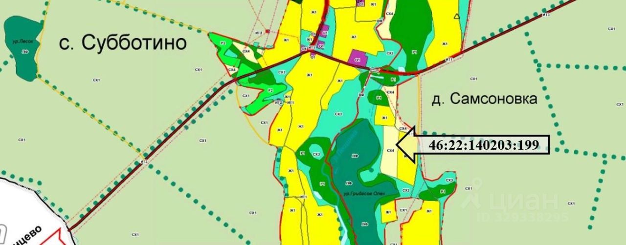 Земельный участок с кадастровым номером 46:22:140203:199, площадью 54011+/-81 кв.м., разрешенное использование растениеводство, расположенный по адресу: Российская Федерация, Курская область, м.р-н Солнцевский, с.п. Субботинский сельсовет, д. Самсоновка
