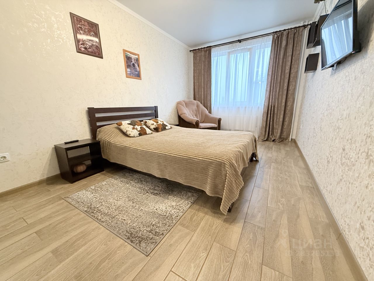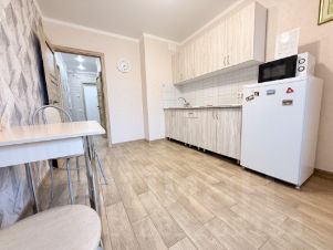 - Вся необходимая для комфортного проживания бытовая техника и мебель, а именно: телевизор, холодильник, кухонная индукционная плита, стиральная машина, микроволновая печь, электрический чайник, фен, двуспальная кровать, гардеробная, стол обеденный и т.д.