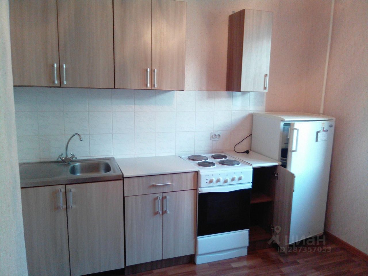 В квартире три шкафа, вешалка, комод, диван книжка, кухонный гарнитур, имеются карнизы со шторами,люстры. Из техники имеется: холодильник, стиральная машина. В ванной и на кухне выложена керамическая плитка.
