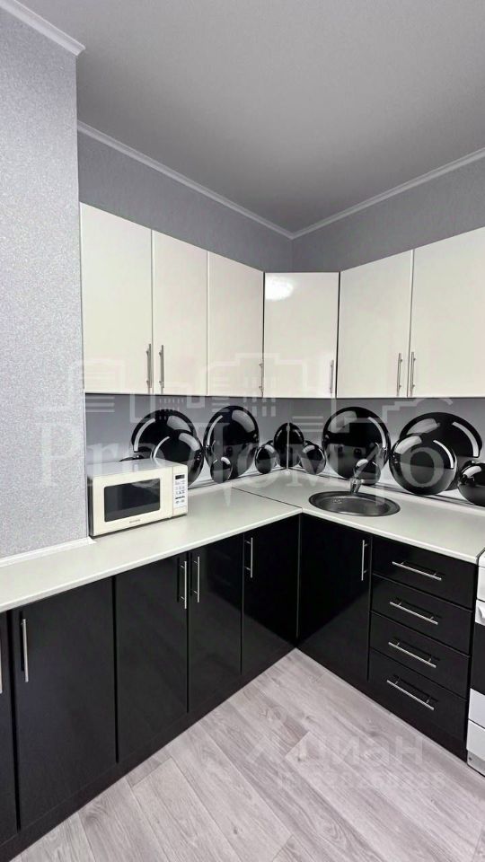 Квартира с мебелью: шкаф-купе, диван-еврокнижка, журнальный стол, стенка, встроенный кухонный гарнитур и столовая группа на кухне, вешалка и обувница в прихожей. Полный комплект бытовой техники: индукционная электроплита, холодильник, микроволновка, стиральная машина.