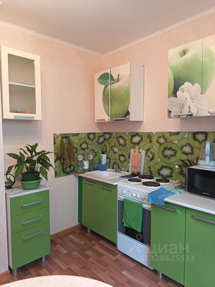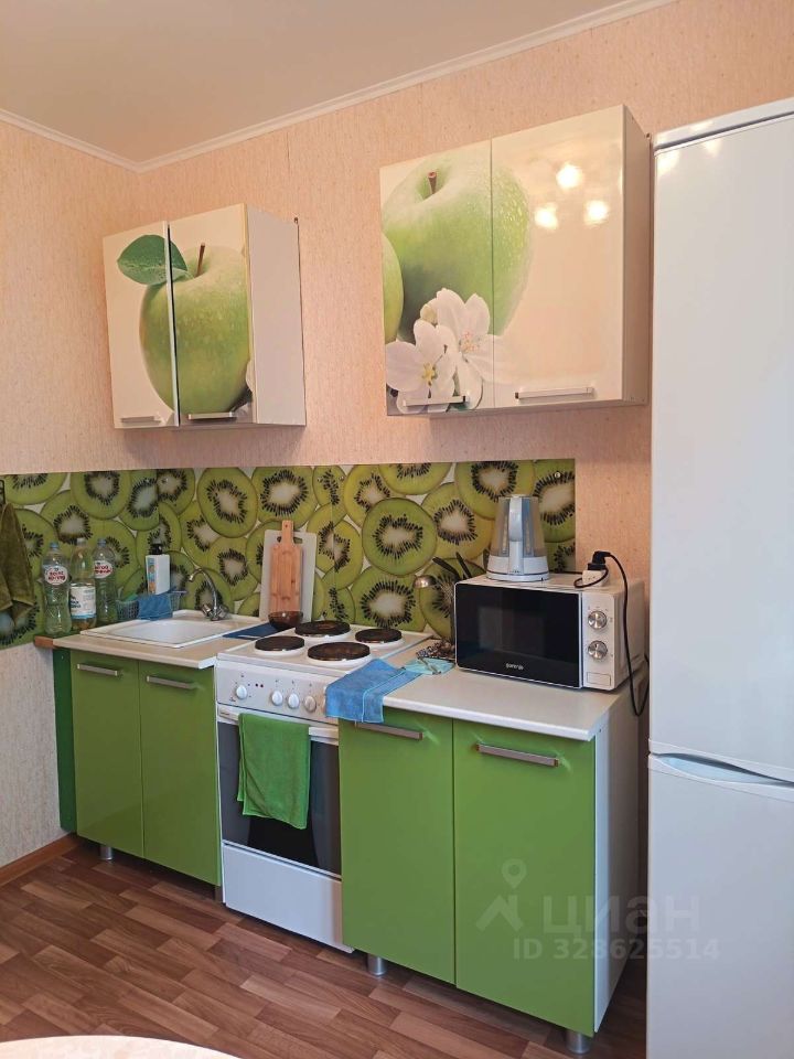 В квартире имеется: кухонный гарнитур, холодильник, стиральная машинка, микроволновая печь, диван, стол, стулья и т п.