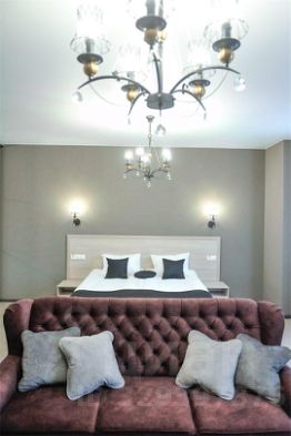 Современный, просторный однокомнатный номер площадью 45 кв.м, с оригинальной дизайнерской отделкой, подойдет для одно- или двухместного размещения.
