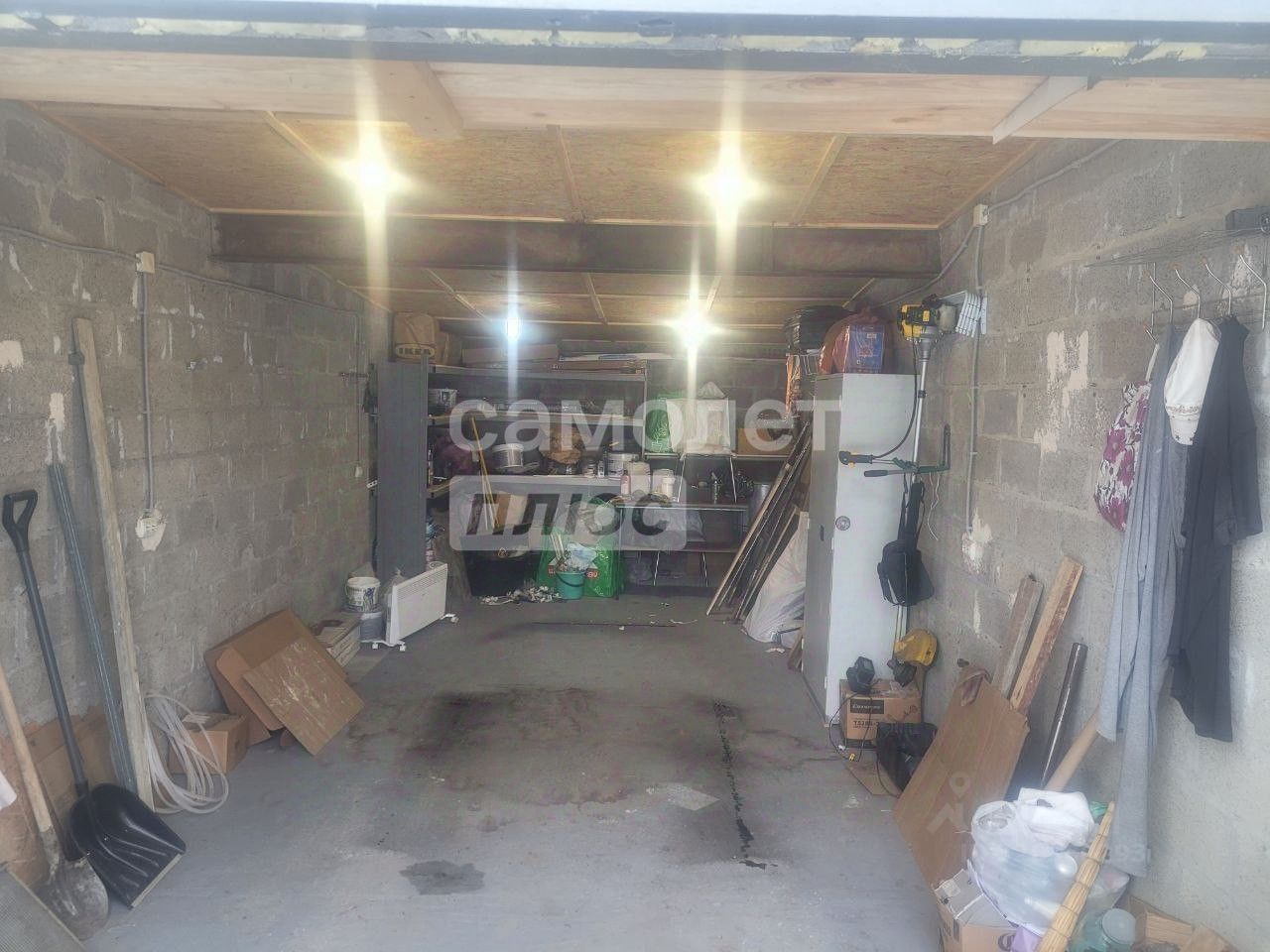Шлакоблочный гараж с бетонной отмоской до дороги.