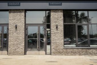 • Современный фасад с декоративным кирпичом