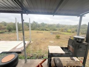 Неподалеку имеется новый туалет и раковина-тюльпан с канализацией, новый сарай, еще одна постройка, большая теплица.