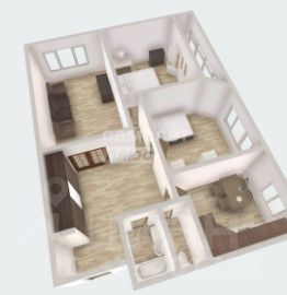 2 спальни по 16 кв.м и большой зал 22.8 кв.м. Потолки 3 метра.