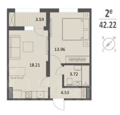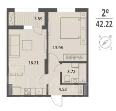 Вашему вниманию представлен один из возможных вариантов планировочных решений однокомнатных квартир евро формата (2Е), находящуюся на 1 этаже, 16-ти этажного жилого дома Комплекса "Инстеп.Хуторская".
