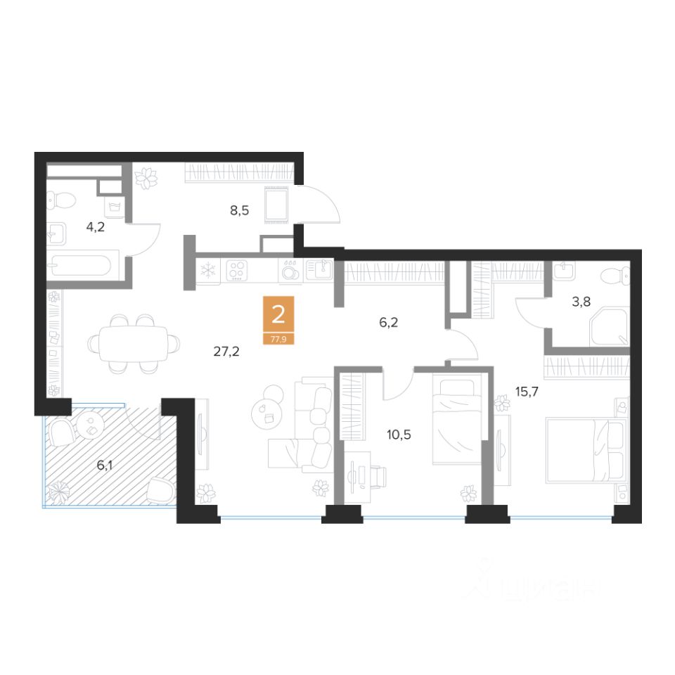 Общая площадь77,9 м²