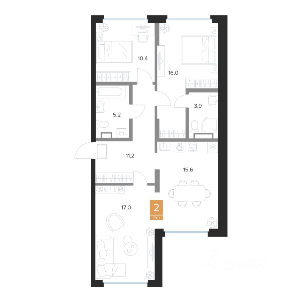 Общая площадь79,3 м²