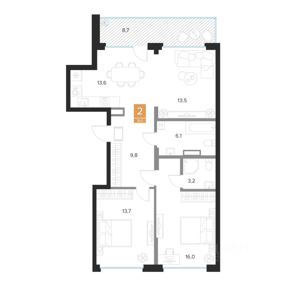 Общая площадь78,5 м²