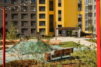 Во дворе представлено фирменное благоустройство от Инстепа, которое уже можно увидеть в сданных домах первой очереди большие игровые комплексы из натурального дерева в эко-стиле, высокие горки, пешеходные мосты, батуты и спортивные тренажеры с изменяемой нагрузкой. Продуманное озеленение по дендроплану с автополивом липы, клены, много хвойных деревьев, большие зоны с кустарниками (спиреи, можжевельники, пузыреплодники и другие тщательно подобранные растения). Во дворе предусмотрено наружное освещение на разных уровнях и гирлянды для вечерней подсветки.