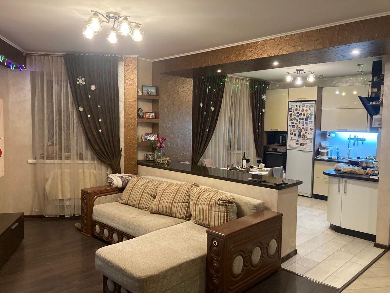 Комнаты изолированные ( полы - ламинат, на стенах качественные обои), с/узлы - кафель. В кухне и прихожей на полу плитка. Полы в кухне и с/узлах с подогревом. На стенах в кухне и гостиной декоративная штукатурка.