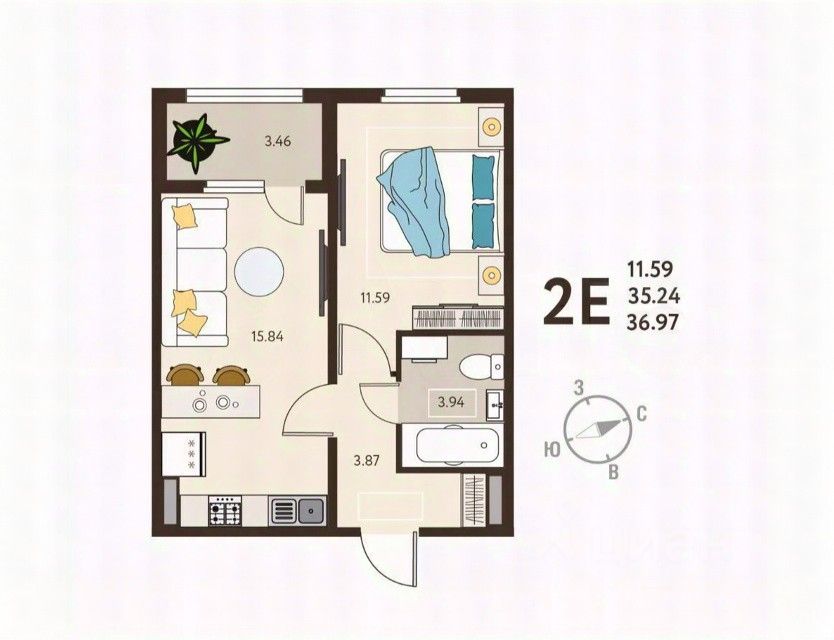 Общая площадь37 м²