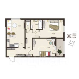 Вашему вниманию представлен один из возможных вариантов планировочных решений однокомнатных квартир евро-формата, 18-ти этажного жилого дома Комплекса "Инстеп.Сити" (позиция 10).