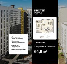 Продается 2-комн. квартира от застройщика с предчистовой отделкой в ЖК "Инстеп.Сити" на 2 этаже. Общая площадь: 64.6 кв.м. Высота потолков 2.64 м.