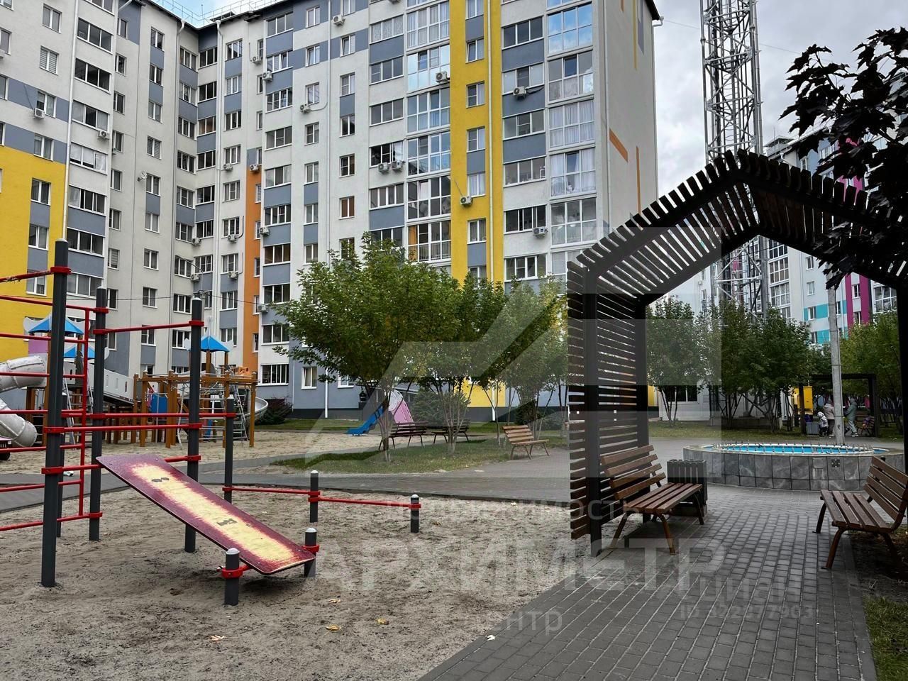 Во дворе большая парковка, детская площадка.