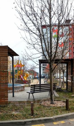 Огромным достоинством данного ЖК является закрытая территория, что позволит Вам всегда свободно припарковать машину. Во дворе дома современная детская площадка, места отдыха для взрослых - теннисный стол и фонтан. На территории дома магазин Пятёрочка, аптека, ВБ, ОЗОН, автомат с водой.