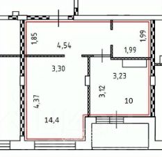 Комната 14,4 кв.м., кухня 10 кв.м.