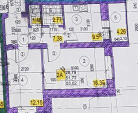 Площадь 53,82 кв.м