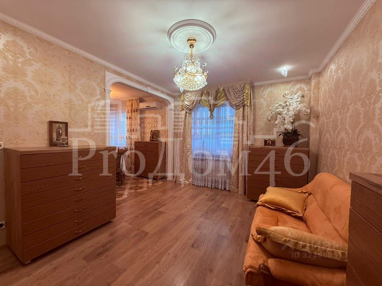 Будущему собственнику в дар останутся: кухонный гарнитур со встроенной техникой, холодильник, стиральная машина, обеденная группа (стол и стулья), спальный гарнитур, гардеробная в коридоре.
