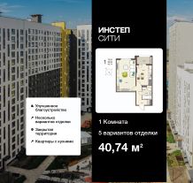Продается 1-комн. квартира с предчистовой отделкой в ЖК "ИНСТЕП.СИТИ" на 15 этаже. Общая площадь: 40.74 кв.м., жилая: 19.54 кв.м., площадь просторной кухни-столовой: 10.4 кв.м. Все окна выходят на одну сторону. В квартире одна лоджия, один совмещенный санузел. Высота потолков 2.64 м.