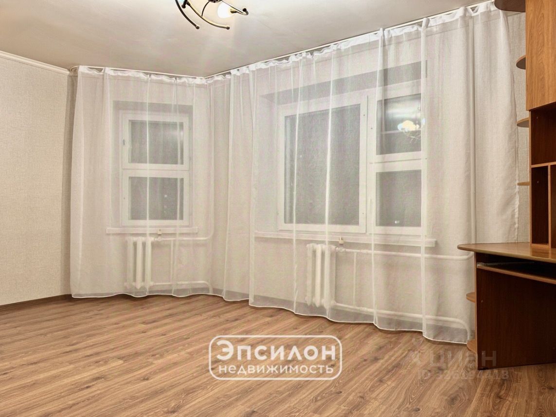 Светлая жилая комната, с двумя большими окнами, двойной дверной проём даёт ощущение простора, по площади - 18,4 м2.