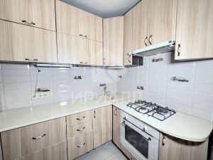 Натяжные потолки в комнатах, пол — ламинат, пластик на кухне и в санузлах. По всей квартире заменены радиаторы на биметаллические.