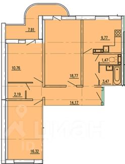 Площaдь — 76,9 м².