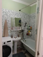 Квартира светлая, с качественным ремонтом, готова к заселению. В стоимость включена практичная мебель: деревянная кровать и шкаф в комнате, полноценный кухонный гарнитур с обеденной группой, вся мебель в прихожей и удобные шкафчики в совмещенном санузле. На застекленном балконе остается функциональный стеллаж для хранения.